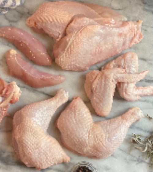 ✔Choose "Whole Chickens" for a cost-saving option or “Cut-up Chickens" for convenience (and more efficient freezer space utilization). Cuts include boneless skin-on breast, wings, tenders, drumsticks, hindquarters in separate vacuum sealed bags of . (livers, feet, and backs available on request).
